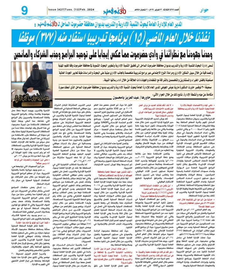 ✒️ إعلام الإدارة العامة لبحوث التنمية الإدارية والتدريب بساحل حضرموت - اليوم الأحد - الموافق ٢٩- ٩ -٢٠٢٤م